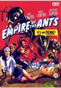 In Empire of the Ants, a sleazy real estate developer takes a boatload of potential suckers clients to look at swampland prime real estate. The people are (for the most part) slightly less sleazy that the developer … and then they meet giant ants, who murder several of the two-dimensional characters. Although I admit that I felt bad for the old couple …